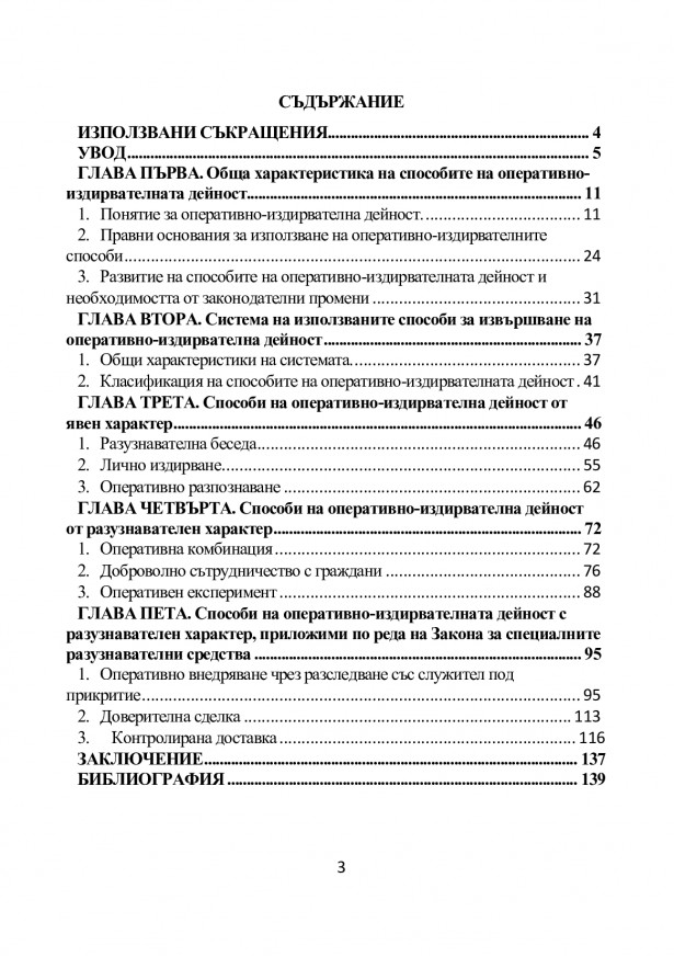 Настоящият труд предлага решаване на прагматични задачи на основата на теорията на оперативно-издиравателната дейност и прилагането на специалните разузнавателни средства, които наред с това са достатъчно обозрими в тематичната си широта. Тази монография би могла да бъде верен помощник на студенти, правоприлагащи органи и други заинтересовани лица, като ще може да им помогне при решаване на проблемите, които стоят пред тях, както и да породи въпроси и да създаде дискусия относно правилността на изложените виждания и направените предложения за законодателни промени.